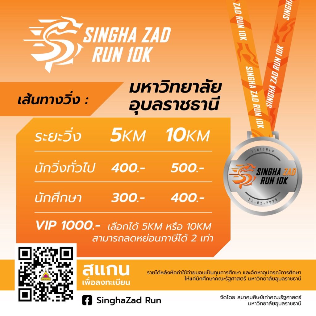 งานวิ่งการกุศล เพื่อหารายได้หลังหักค่าใช้จ่ายมอบเป็นทุนการศึกษา และจัดหาอุปกรณ์การศึกษาให้แก่คณะรัฐศาสตร์ มหาวิทยาลัยอุบลราชธานี